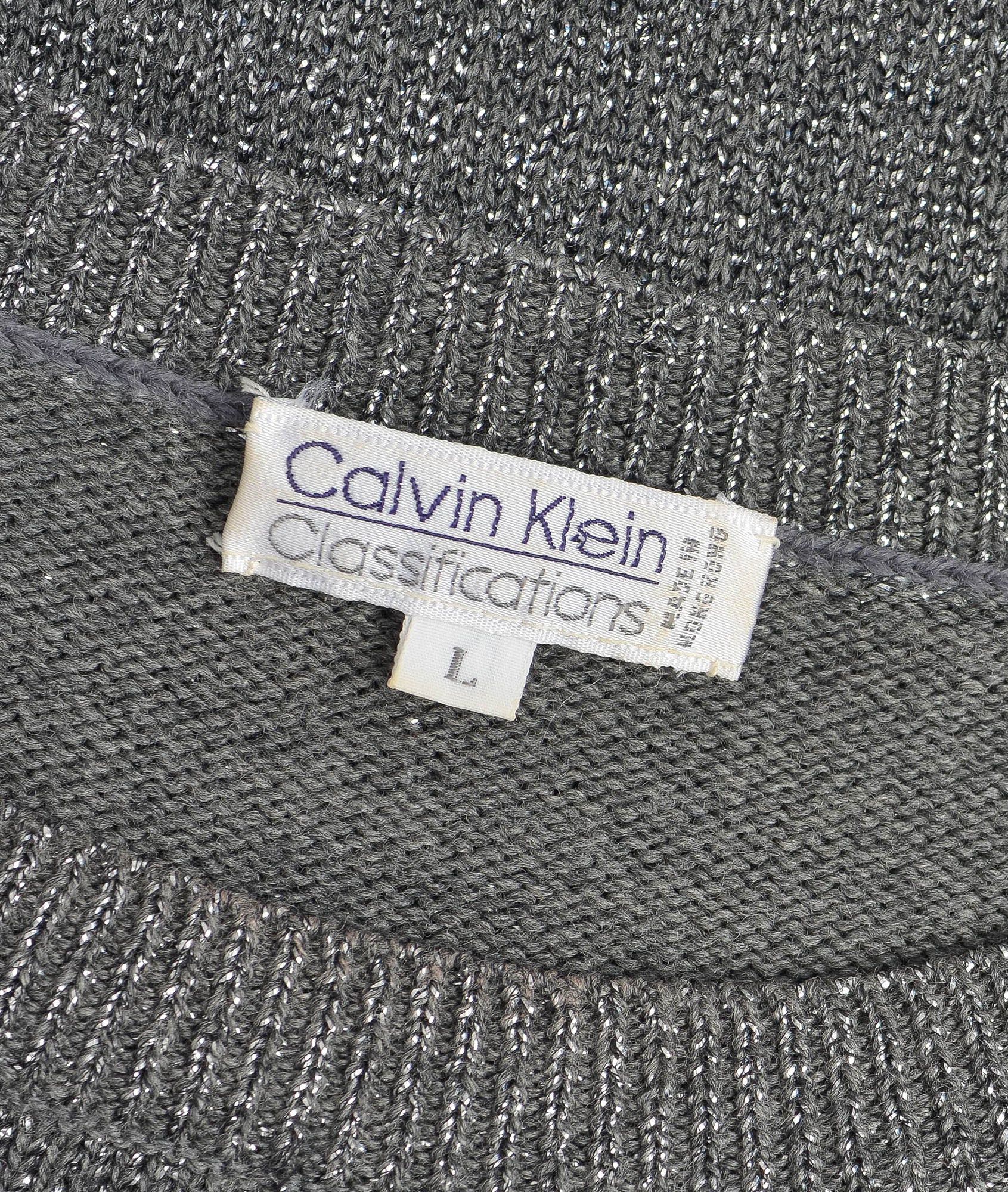 Vintage 80s Calvin Klein Gray Silver Wool Blend Sweater with Pockets size M L