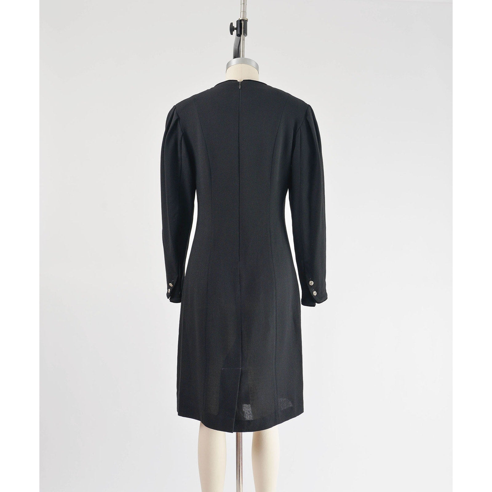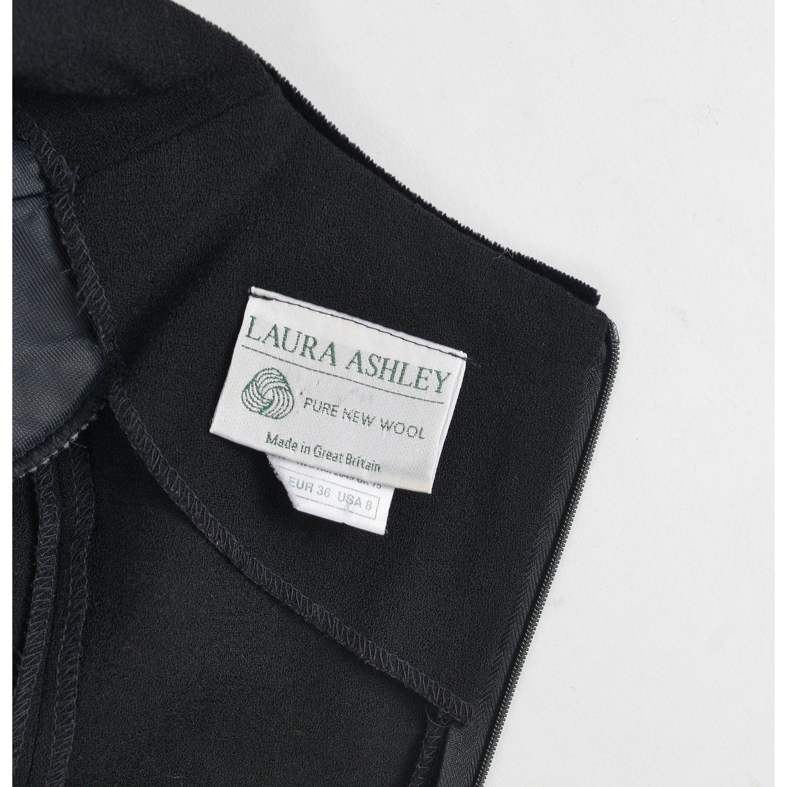 Vintage 90s Laura Ashley Black Wool Dress Puff Sleeve Lolita Goth Sheath Dress with Velvet Bow size Small